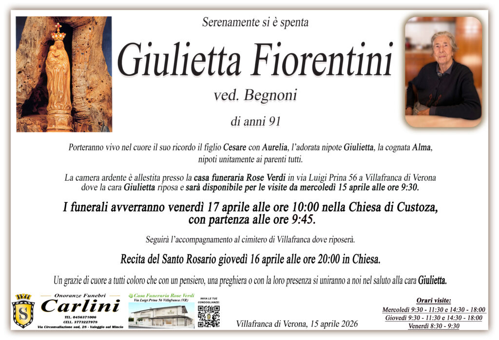 I FUNERALI AVVERRANO VENERDì 17 APRILE ALLE ORE 10:00